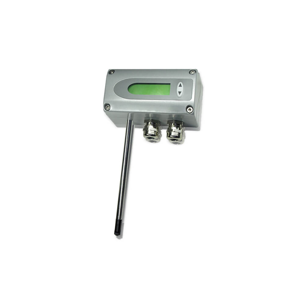 | Applications : | The AV 75 series air velocity transmitters were developed to obtain accurate measuring results over a wide range of velocities and temperatures. Ahigh-quality hot film sensor element based on cutting-edge thin film technology ensures maximum sensitivity, even at lowest mass flows. At the same time, the innovative probe design produces reliable measuring results at high flow velocities of up to 40m/s(8000ft/min).The integrated temperature compensation minimises the temperature cross-sensitivity of the Av75 series which, combined with the robust mechanical design, allows it to be used at process temperatures between -40 to +160°C (-40 to 320°F). In addition to air velocity and temperature values, the transmitter calculates the volumetric flow rate in m³/min or ft³/min. The cross section of the duct needs to be determined for this purpose and the volumetric flow rate can be displayed and directed to one of the analogue outputs. The configuration software included in the scope of supply allows to choose the appropriate output parameter and freely scale the display range and signal level of the two analogue outputs. In addition user-friendly calibration of the air velocity and temperature and the adjustment of key parameters (e.g. response time of the velocity measurement, low flow cut-off points, etc.) are supported as well. An optional illuminated display with two control buttons integrated in the cover is available. In addition, this enables changes of the configuration to be made directly on the unit. The AV 75 series has a robust metal housing to protect against possible damage in rough industrial environments. There are five different models, providing a comprehensive range of mounting options: – Model A for wall mounting The AV 75 series can be used to measure the velocity of other gasses as well, although a correction has to be applied to the unit at the factory. |